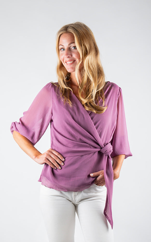 Metty Short Copy är blusen som smickrar din figur med sin vackra omlott-drapering. Tygets mjuka fall skapar en feminin siluett som framhäver midjan och ger ett elegant uttryck. Den genomtänkta 1/3-ärmen med resår ger både rörelsefrihet och en stilfull balans.